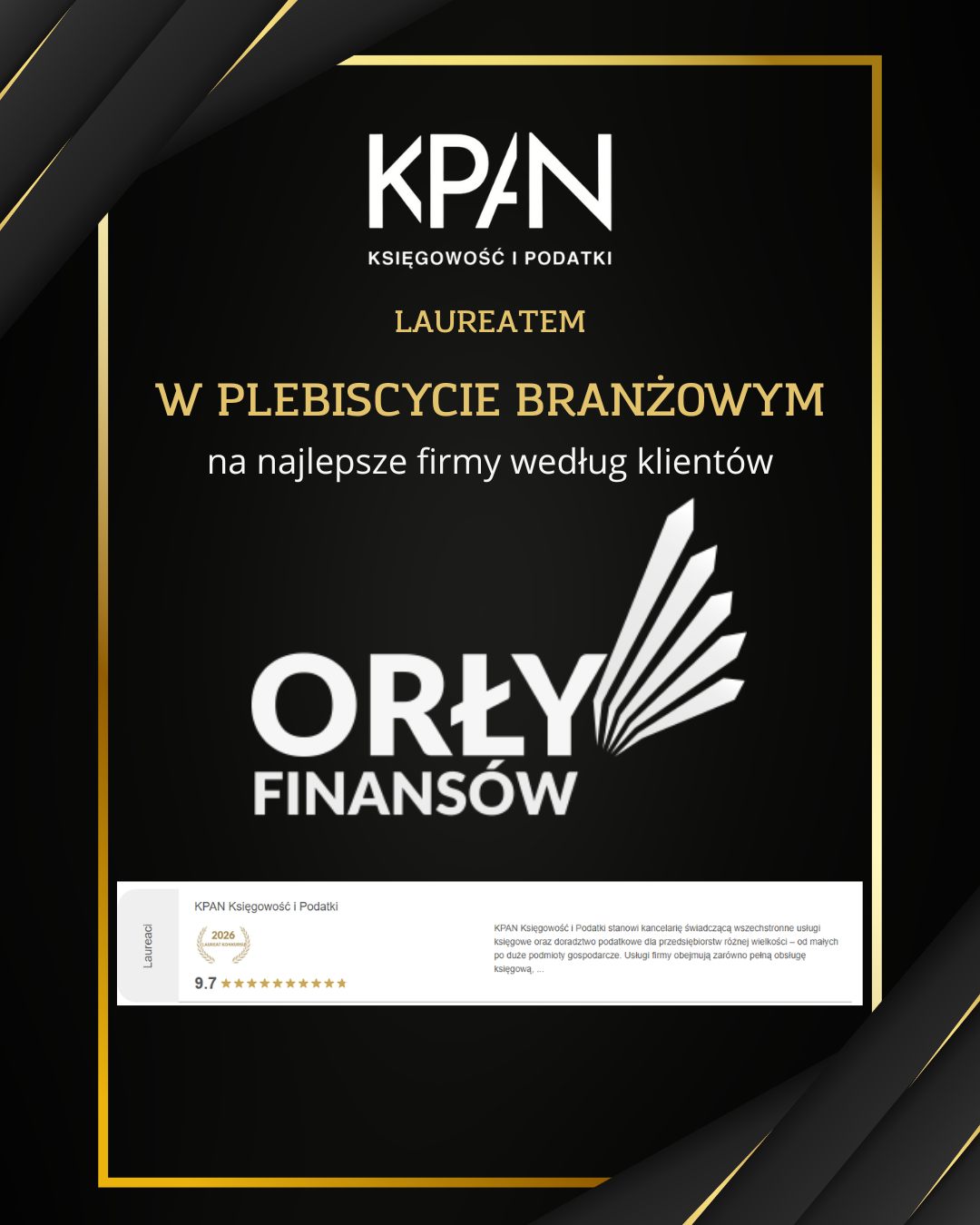 Z radością ogłaszamy: Kancelaria KPAN laureatem Orłów Finansów! 18/03/2026 Informujemy,
