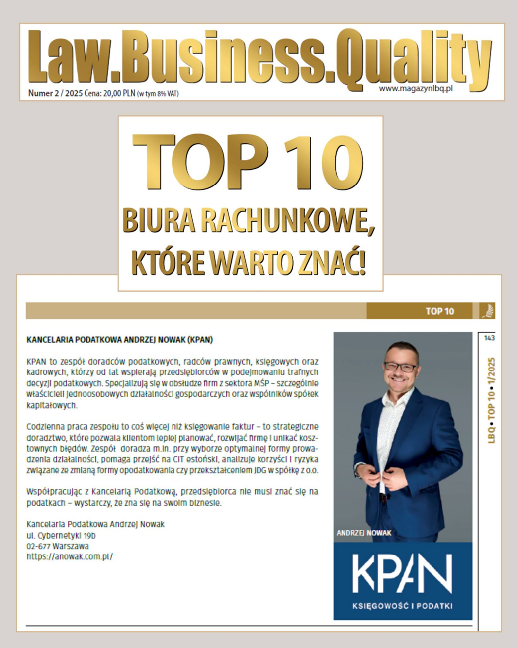 KPAN została wyróżniona w TOP 10 biur rachunkowych 13/08/2025 Jest