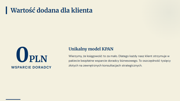 Wierzymy, że księgowość to coś więcej niż liczby. Dlatego nasi klienci w ramach współpracy mają dostęp do darmowych konsultacji biznesowych. Doradca pomoże Ci w rejestracji i założeniu firmy, planowaniu działań oraz poprowadzi przez inne zawiłości operacyjne. To wsparcie, które zazwyczaj kosztuje tysiące złotych, u nas otrzymujesz w pakiecie.