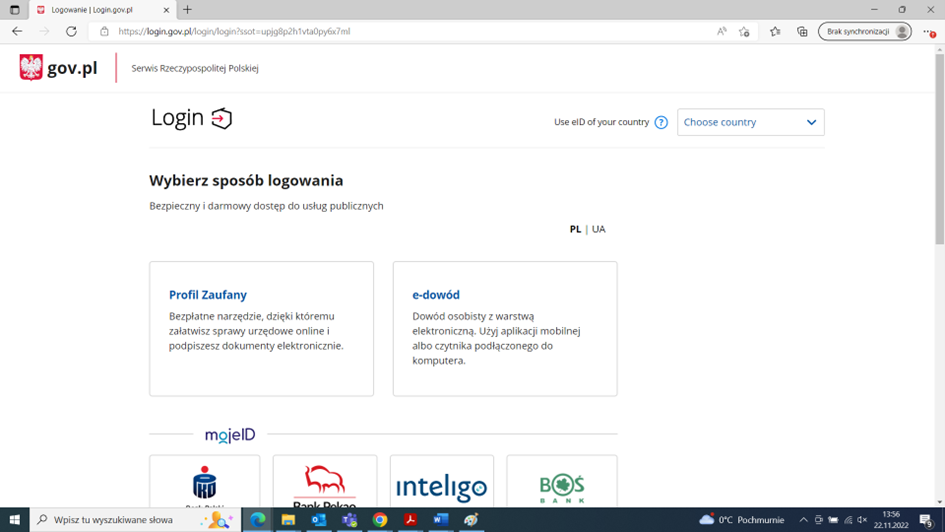 A: metod z portalu login.gov.pl (profil zaufany, e-dowód, bankowość elektroniczna),
