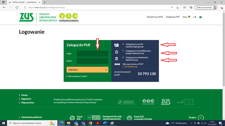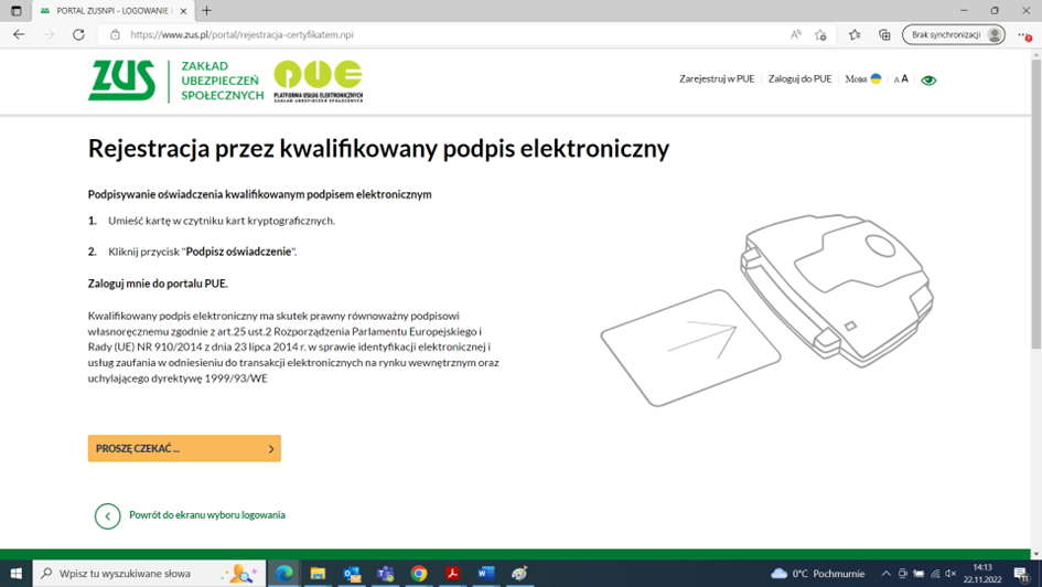 B:Na stronę ZUS www.zus.pl/portal/rejestracja-certyfikatem.npi