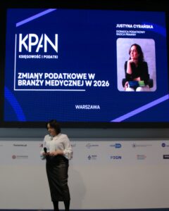 Justyna Cyrańska, doradca podatkowy, radca prawny – za profesjonalną reprezentację firmy i eksperckie wystąpienia w mediach.