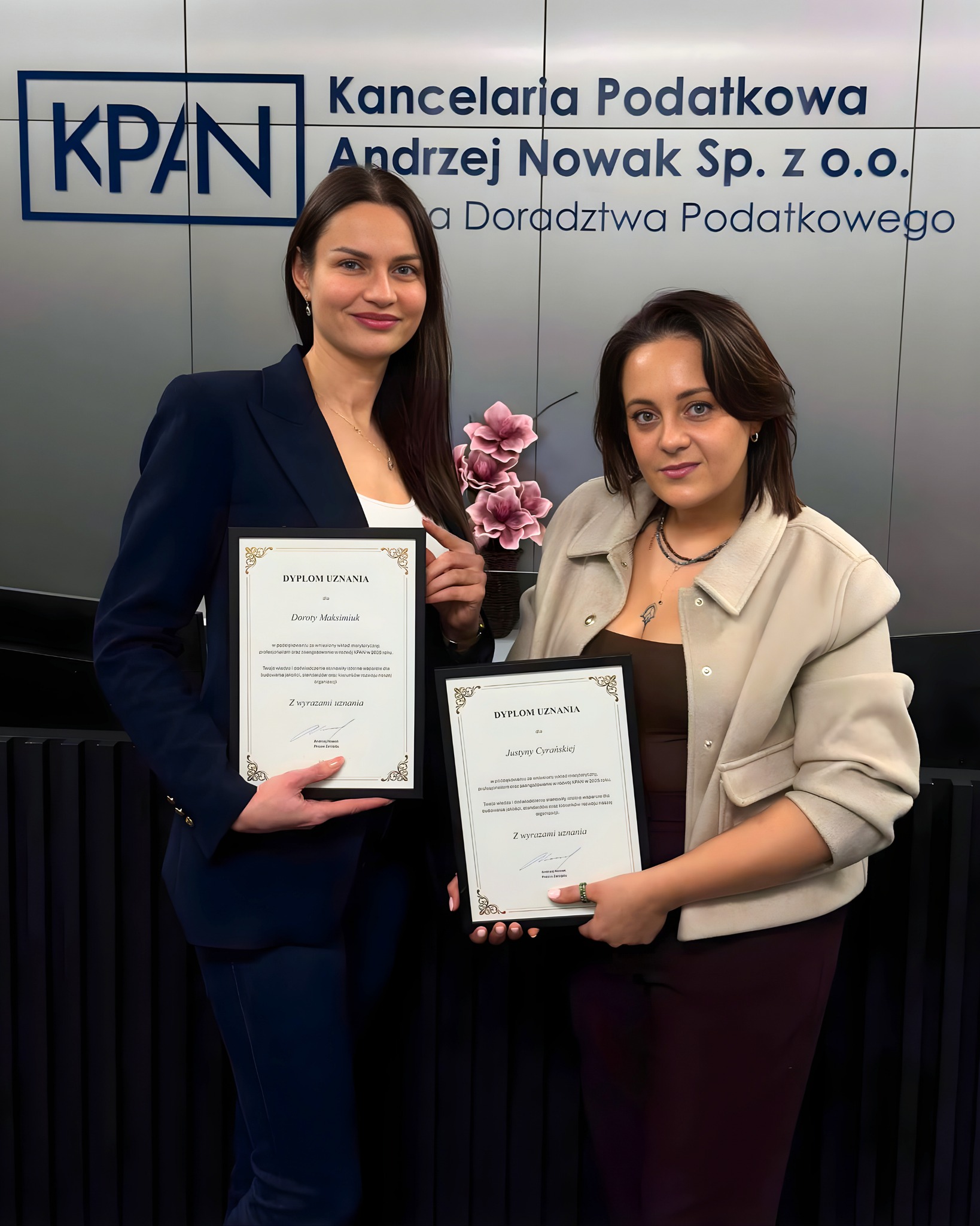Z ogromną satysfakcją informujemy, że Pani mecenas Dorota Maksimiuk oraz Pani mecenas Justyna Cyrańska otrzymały specjalne wyróżnienie za pracę merytoryczną, zaangażowanie w sprawy naszych Klientów oraz realny wkład w rozwój Kancelarii KPAN.